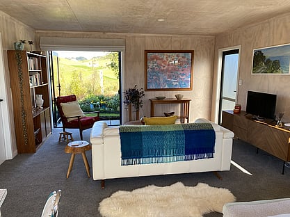 "Stayed at this delightful studio apartment for two nights in Autumn. The setting is peaceful; overlooking farmland and gardens, and only a 5 minutes drive from Raglan township. The on site owners had furnished the pristine art decor style studio with everything needed to make our stay enjoyable. Cosy, spotless, well equipped, welcoming, with an array of local food items available for breakfast. We have recommended this gem to many of our friends