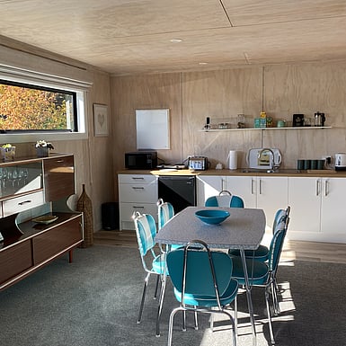 Our self-catered Raglan accommodation is designed to make you feel at home the moment you walk in. Inspired by a coastal, retro vibe, the open plan studio layout has designated spaces to optimise your comfort and bring that sense of quiet relaxation.